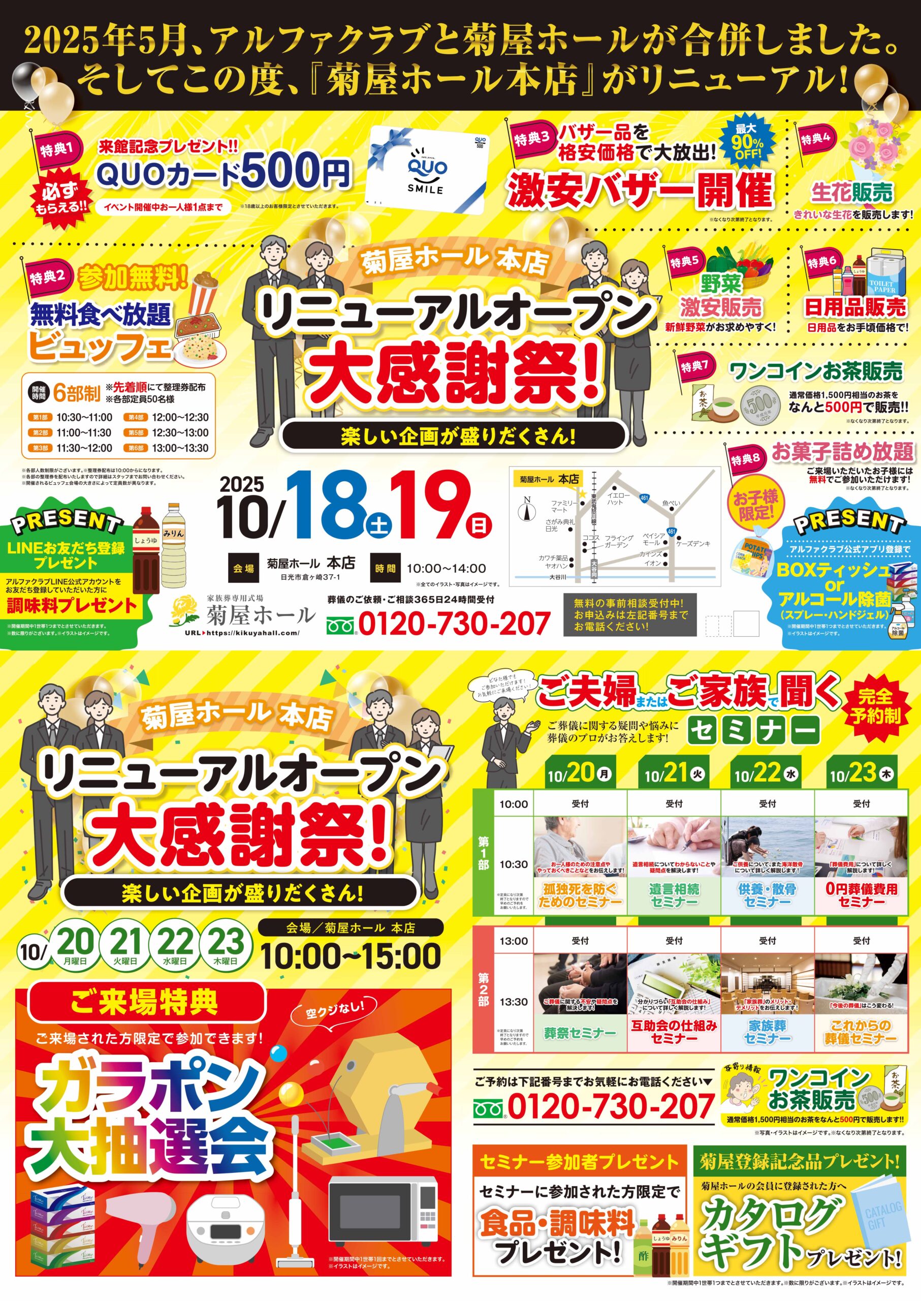 - 菊屋ホール本店「リニューアルオープン大感謝祭」開催!